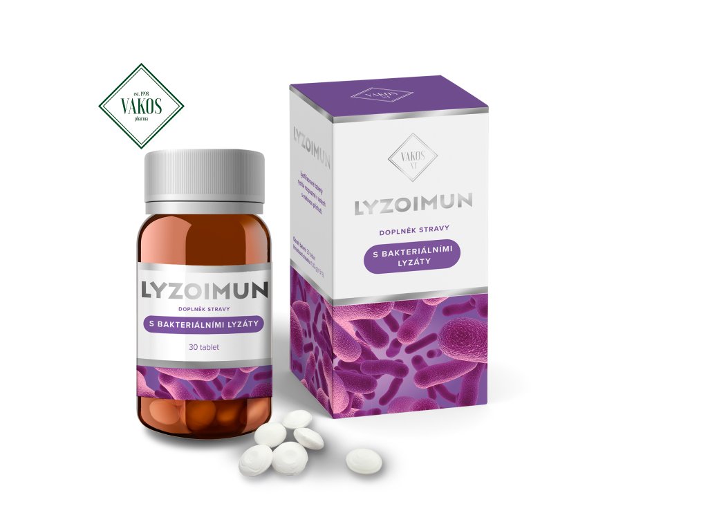 LYZOIMUN je imunomodulační doplněk stravy, který obsahuje bakteriální lyzáty na podporu imunitního systému. Lyofilizované (za mrazu vysušené) tablety se rozpouštějí v ústech, což umožňuje lepší absorpci účinných látek. Obsahuje 4 inaktivované bakteriální kmeny spojené s infekcemi horních cest dýchacích.